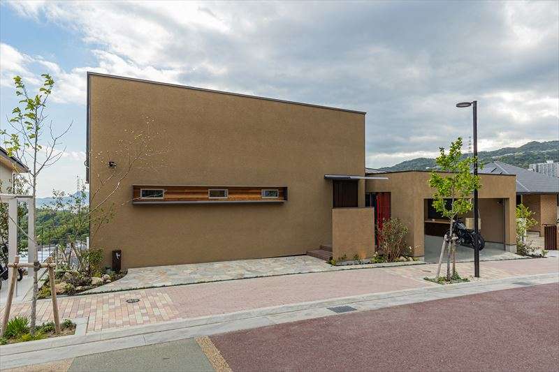 閑静な住宅街に一際目立つ、お洒落なお家。家の表側と裏側で違った雰囲気に。