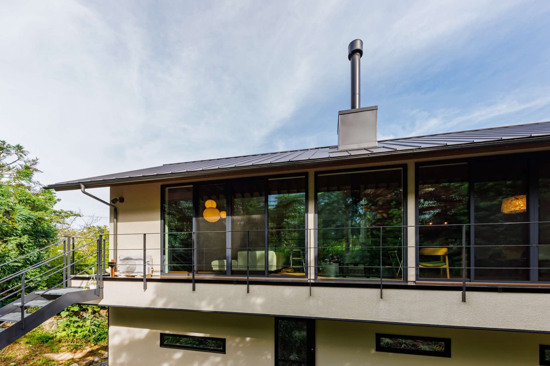 庭でBBQやテントサウナを楽しみたいとのご要望から、1階と2階の間に設けた庭は、2階リビングから直接外部階段を使って気軽にアクセス。